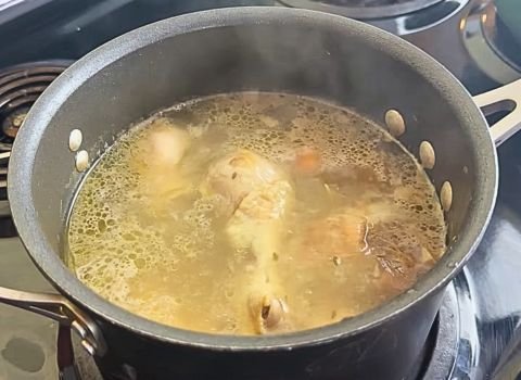 - 3 large chicken legs – Chicken legs have dark meat that stays moist and adds deep flavor to your broth. They cost less than other cuts but taste just as good. You can use chicken thighs or a whole chicken cut into pieces if that works better for you.