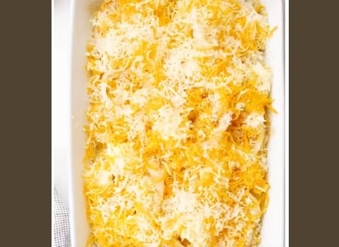 - After 30 minutes, remove the foil carefully. Sprinkle grated cheddar cheese evenly over the top. Put the dish back into the oven for another 5–7 minutes, just until the cheese melts and turns golden.
