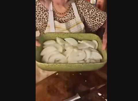 - Lightly grease the casserole dish. Layer the thick-cut onions evenly inside. The goal is to fill the dish with overlapping onion slices so it bakes evenly and stays tender.