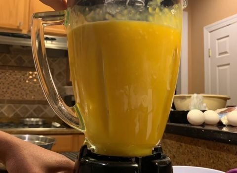 - Peel and cut ripe mangoes into chunks. Blend until smooth. You’ll need 2½ cups total. Keep 2 cups for the filling and save the rest for the topping and decoration.