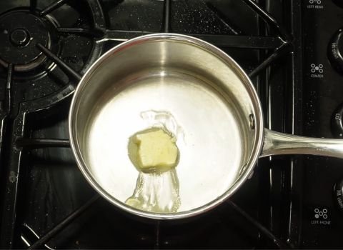- Place a small pot on the stove and set the heat to low or medium-low. Add the butter and let it melt slowly. Stir now and then so the butter stays smooth and does not brown too fast.
