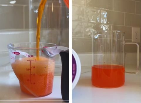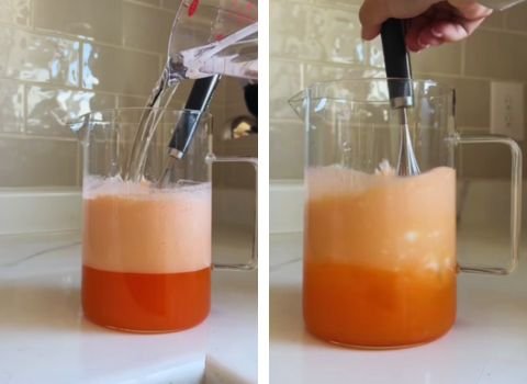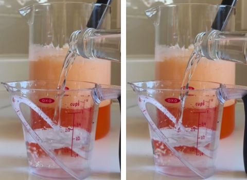 1. Pour the orange crush soda into your measuring cup, filling it to the 1 cup mark. Measure exactly so your drink tastes perfect. Add the orange soda from the measuring cup into your pitcher.