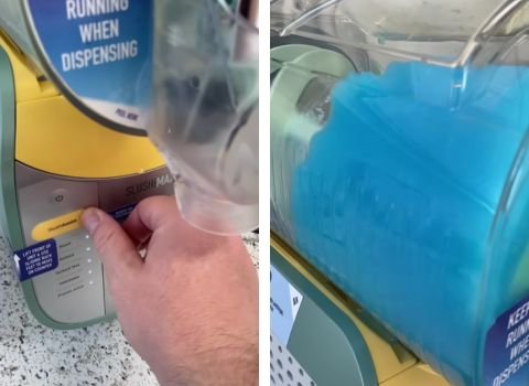 - Place a cup under the spout and dispense the blue raspberry slush. Serve immediately for the best texture and flavor.