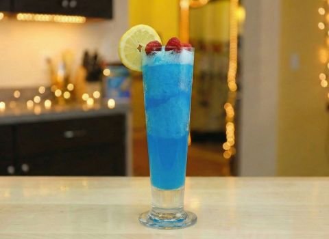 The final texture will still be icy and smooth. Pour slowly to avoid excess bubbles. This option adds a mild soda-like effect without changing the bright blue flavor too much.