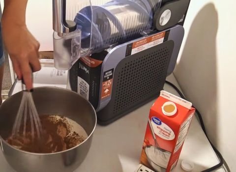 You can make one by whisking or shaking the ingredients in a jar. Add milk, cream, chocolate syrup, cocoa, and sugar into a mason jar. Close the lid tight and shake hard for 3–4 minutes until smooth. It won’t be as thick as the Ninja version, but it works fine.