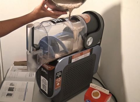 Plug in the Ninja and make sure it’s properly connected. Press the Milkshake preset button and let it do its job. My machine usually takes about 15 minutes to get the perfect consistency. Don’t open the lid during this time – let it work properly.