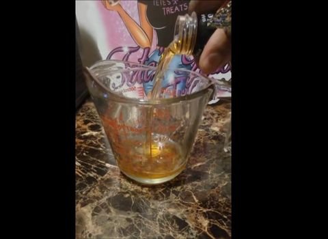 Pour three full cups of Coca-Cola into a measuring cup. Then, measure and add half a cup of Jack Daniel’s whiskey.