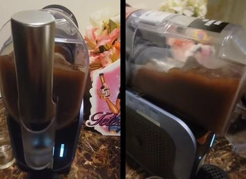 - Once the cycle is done, open the lid and dispense the freshly made slushie directly into your glass. Enjoy your homemade Jack and Coke Slushie right away for the best texture.