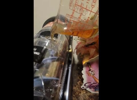 - Carefully pour the mixed soda and whiskey from the measuring cup into the bowl of your Ninja Slushie maker.