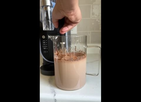 - Whisk in 1 tbsp cocoa powder until fully dissolved.