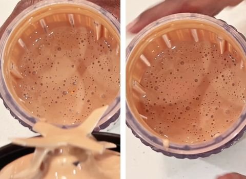 - Put the lid on the blender tightly. Blend on high speed for 45-60 seconds, or until the mixture is completely smooth and there are no chunks.